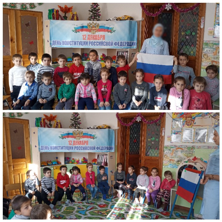 Сегодня 09.12.2019г в МБДОУ Детский сад 1 "Малх" с. Побединское Грозненского муниципального района в старшей группе "Орлята" была проведена беседа на тему: "День Конституции РФ"