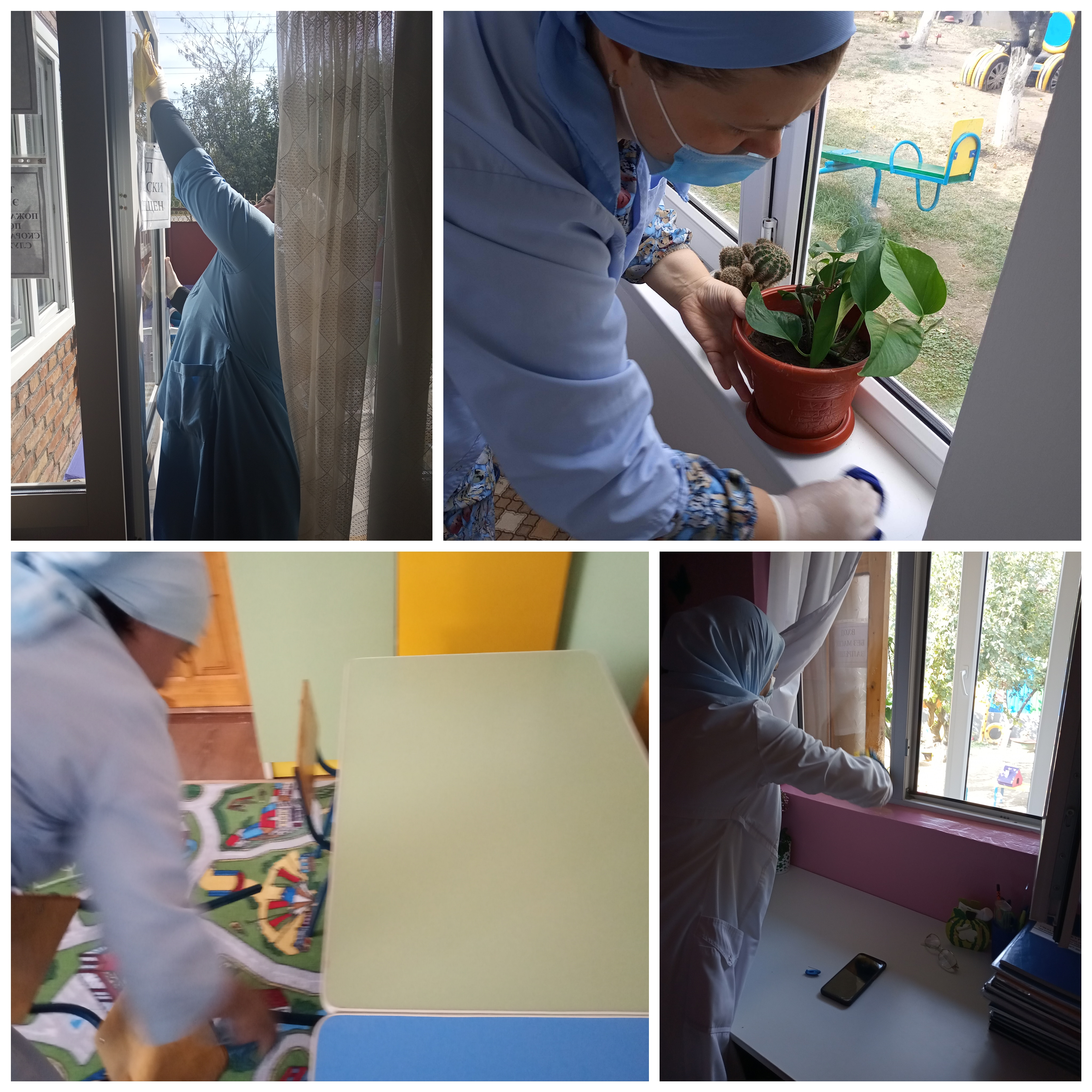 Сегодня 10.10.2020 коллектив МБДОУ Детский сад 1 "Малх" с. Побединское Грозненского муниципального района провил еженедельную генеральную уборку с применением дезинфицирующих средств, рекомендованных Роспотребнадзором.
