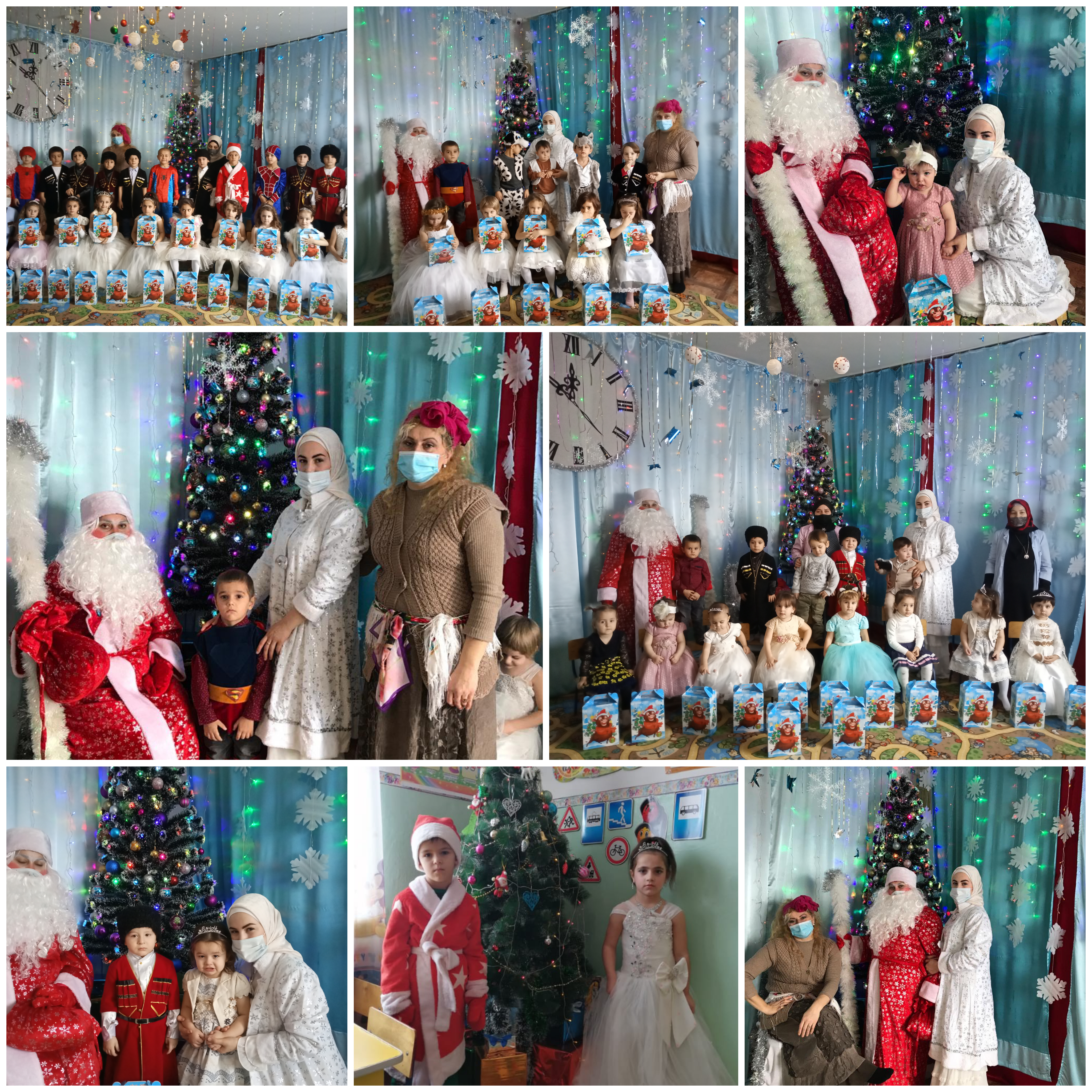 24.12.2020Сегодня 24.12.2020г в МБДОУ Детский сад 1 "Малх" с. Побединское Грозненского муниципального района согласно годовому плану со всеми требованиям Роспотребнадзора в условиях распространения новой коронавирусной инфекции (COVID-19) провели новогодние утренники во всех возрастных группах. Дети читали стихотворения, пели песни. Дед мороз и Снегурочка раздали детям сладкие новогодние подарки. Праздничное мероприятие завершилось зажигательной лезгинкой.