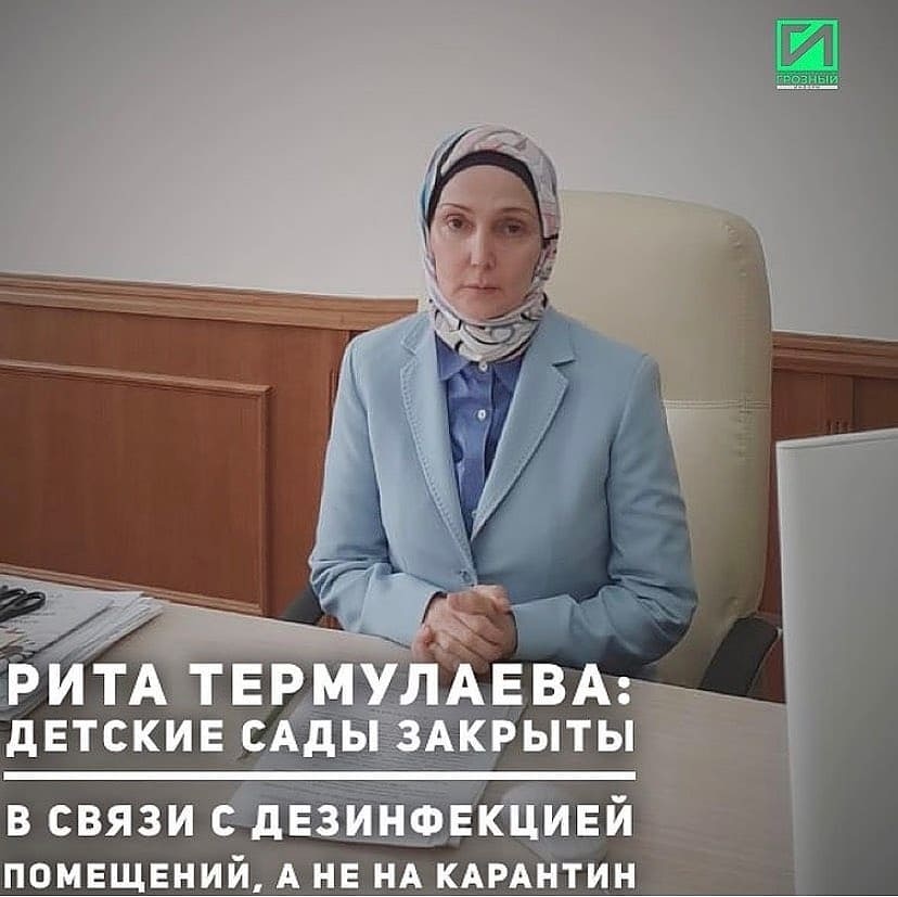 @grozny_inform Детские сады в Чеченской Республике закрыты не на карантин, а для дезинфекции помещений, сообщила ИА "Грозный-информ" глава Роспотребнадзора по Чеченской Республике Рита Термулаева.
