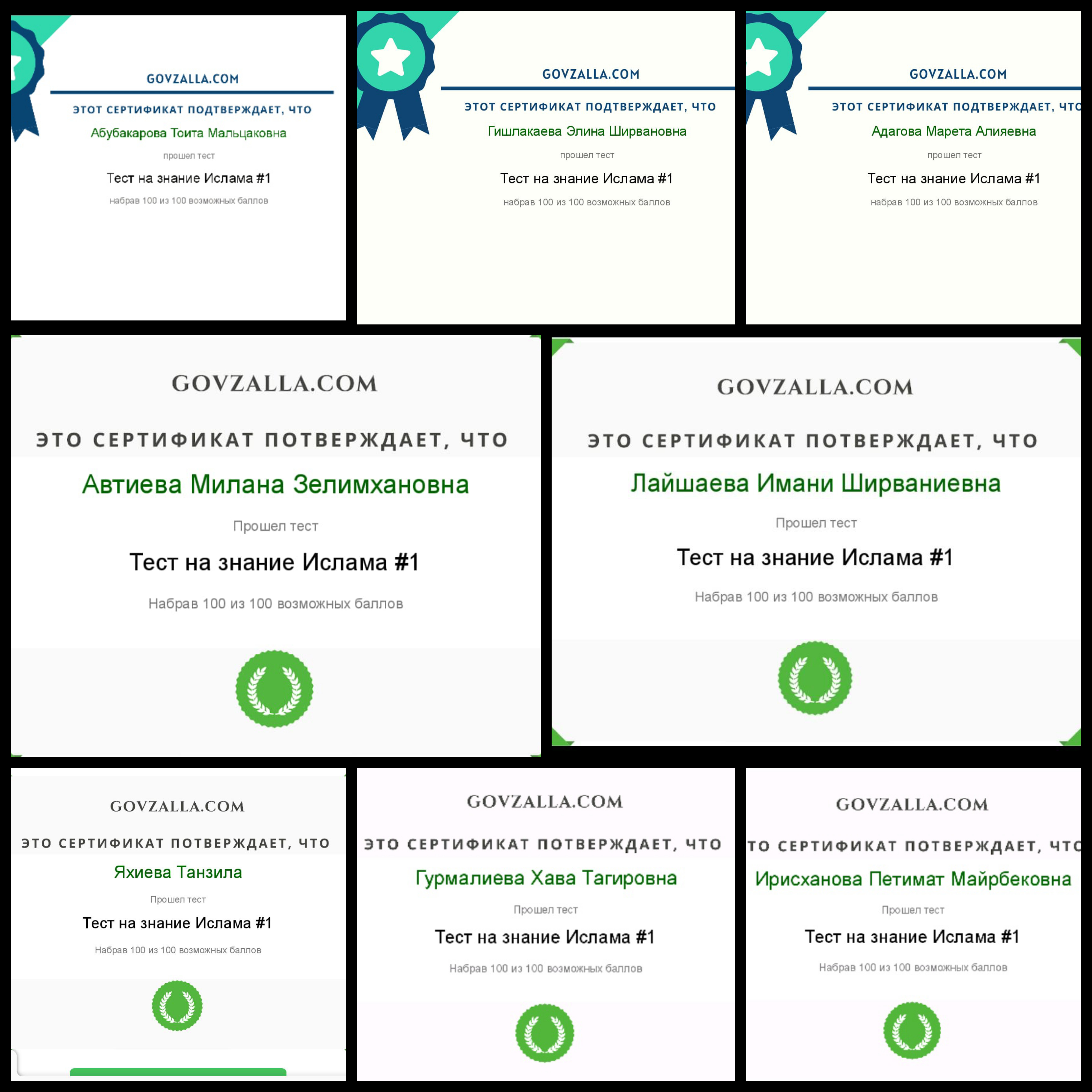 Сотрудники МБДОУ Детский сад 1 "Малх" с Побединское Грозненского муниципального района прошли тест "На знание Ислама" на сайте GOVZALLA.COM о чем получили соответствующие сертификаты.