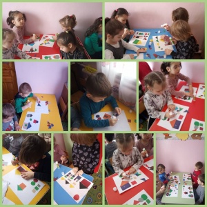 Задачи: развивать воображения и творчество детей, учить создавать изображения из разных геометрических фигур, закреплять умение составлять изображение из различных частей, развивать познавательные способности.