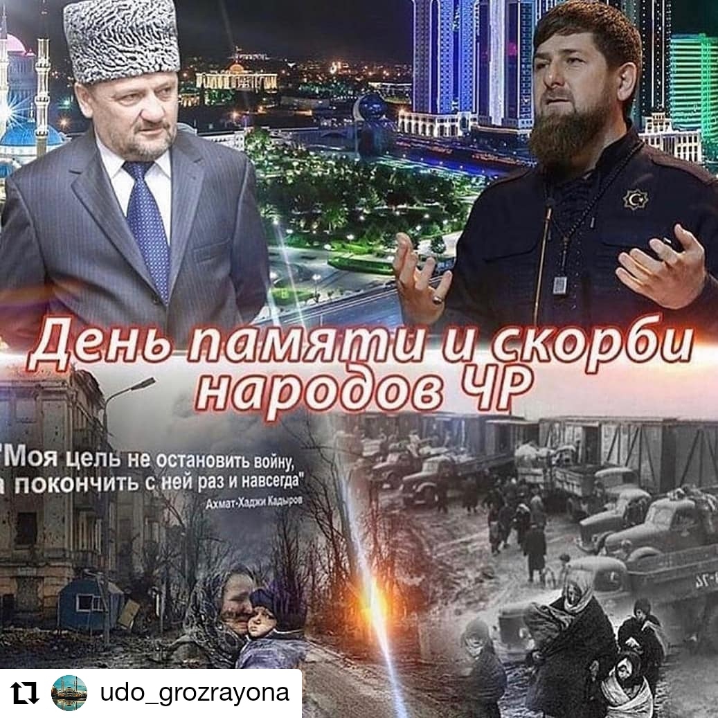 Сегодня, 10 мая, в Чеченской Республике очередной раз вспоминают трагические события в истории чеченского народа - это сталинская депортация 23 февраля 1944 года, сожженные жители селения Хайбах, сотни тысяч мирных жителей, погибшие в первую и вторую военные кампании на территории республики, трагическая гибель 9 мая 2004 года Первого Президента ЧР, Героя России Ахмата-Хаджи Кадырова. (Дала г1азот къобал дойла цуьнан)