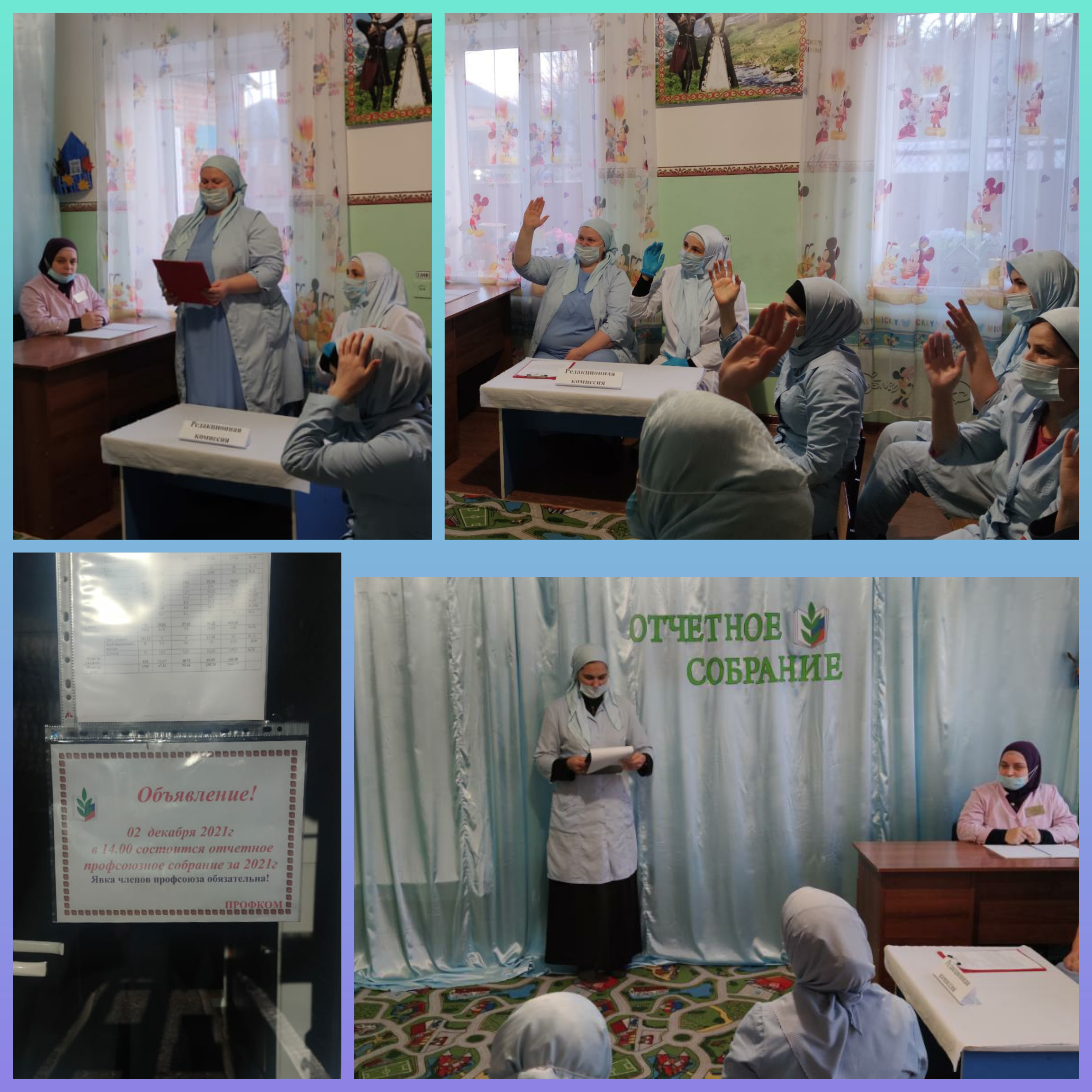 Отчётное профсоюзное собрание в МБДОУ «Детский сад 1 «Малх» с.Побединское Грозненского муниципального района" и принятие дополнительного соглашения к коллективному договору.