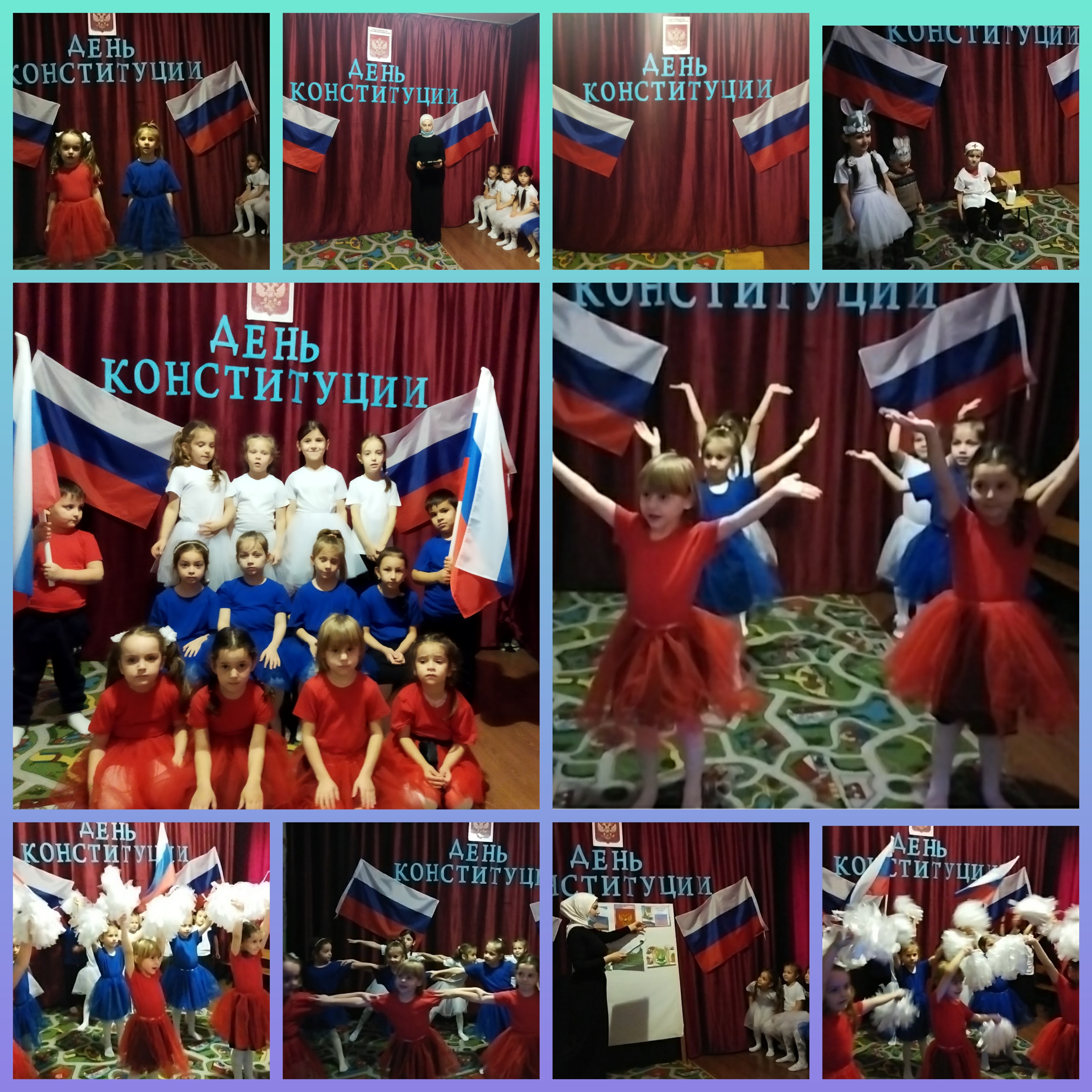 Сегодня 10.12.2021 г. в МБДОУ Детский сад # 1 "Малх" с. Побединское Грозненского муниципального района согласно годовому плану со всеми требованиям Роспотребнадзора в условиях распространения новой коронавирусной инфекции (COVID-19) прошло праздничное мероприятие посвящённое празднику "День Конституции РФ"