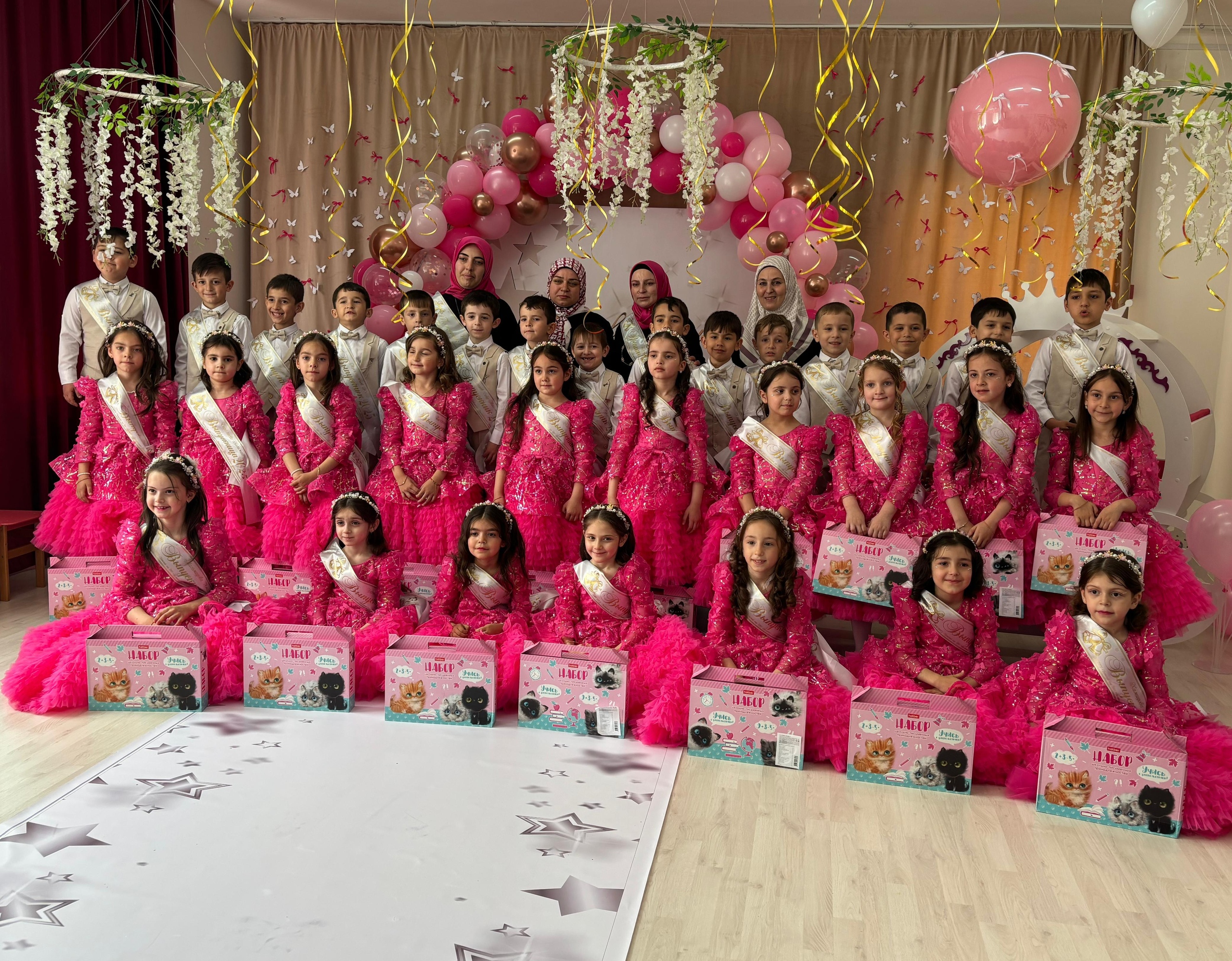 Маленькие выпускники встретили теплым весенним улыбками и радостными воспоминаниями. В этот прекрасный день они праздновали свои первые шаги в мире знаний и дружбы, с радостью делясь радостью и весельем.