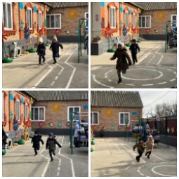 Во время прогулки воспитатели совместно с инструктором по физической культуре провели веселую эстафету для детей старшей группы.