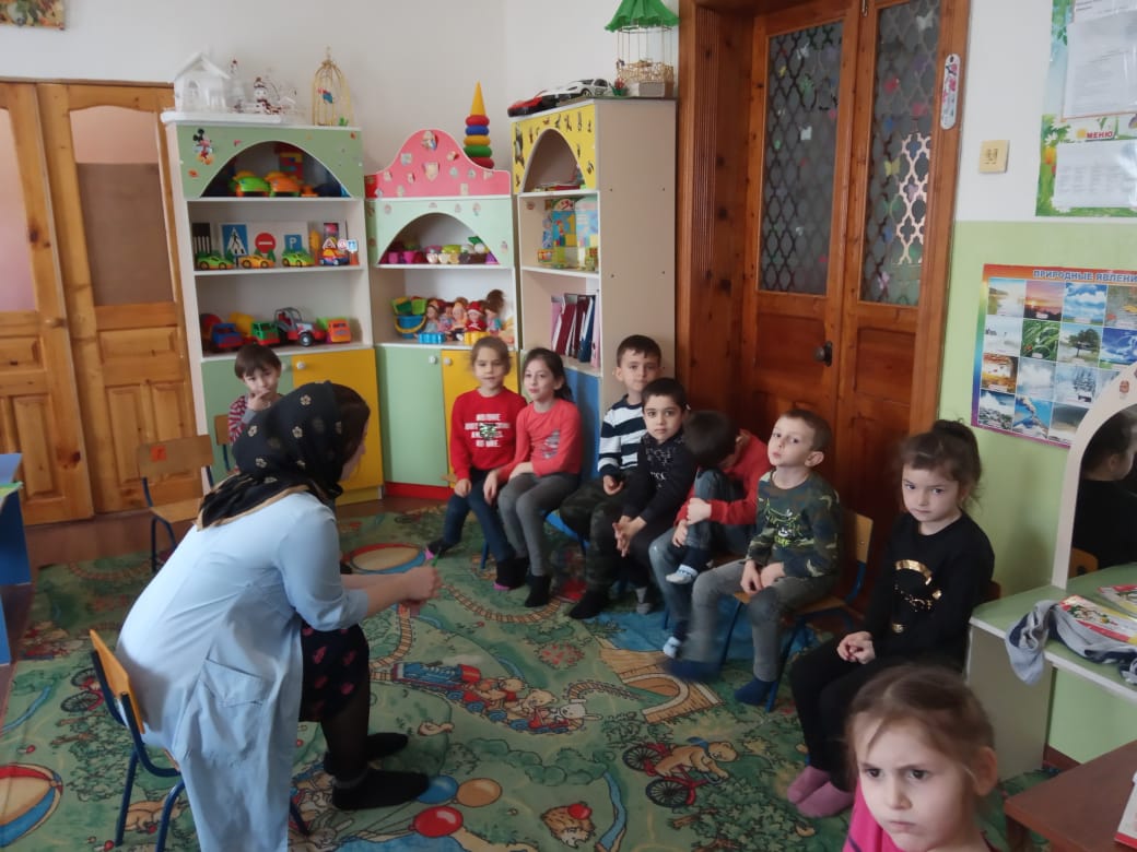 МБДОУ "Детский сад №1"Малх" с.Побединское Грозненского муниципального района" Педагог-психолог провела беседу в старшей группе "Ласточки" на тему "Правила поведения в общественных местах"