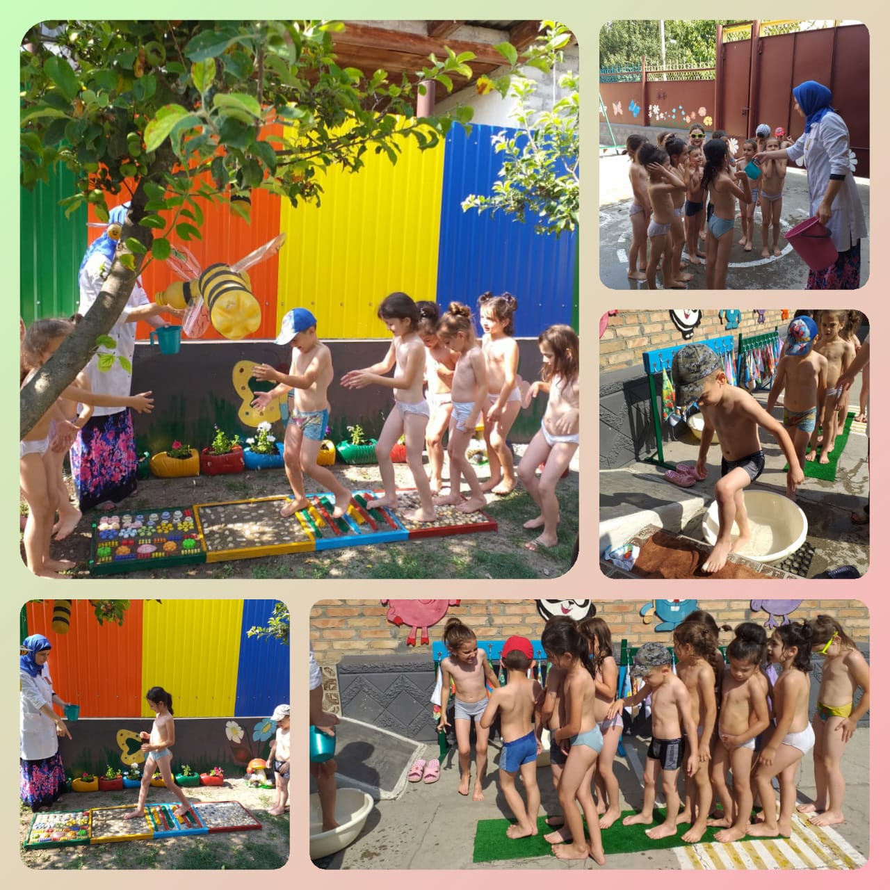 Согласно плану медсестры на летний оздоровительный период в МБДОУ "Детский сад №1"Малх" с.Побединское Грозненского муниципального района" регулярно проводятся процедуры по закаливанию детей во всех возростных группах.